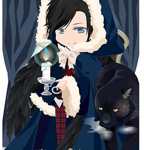 有一隻跟他一樣眼睛顏色的黑貓,取名為夜。